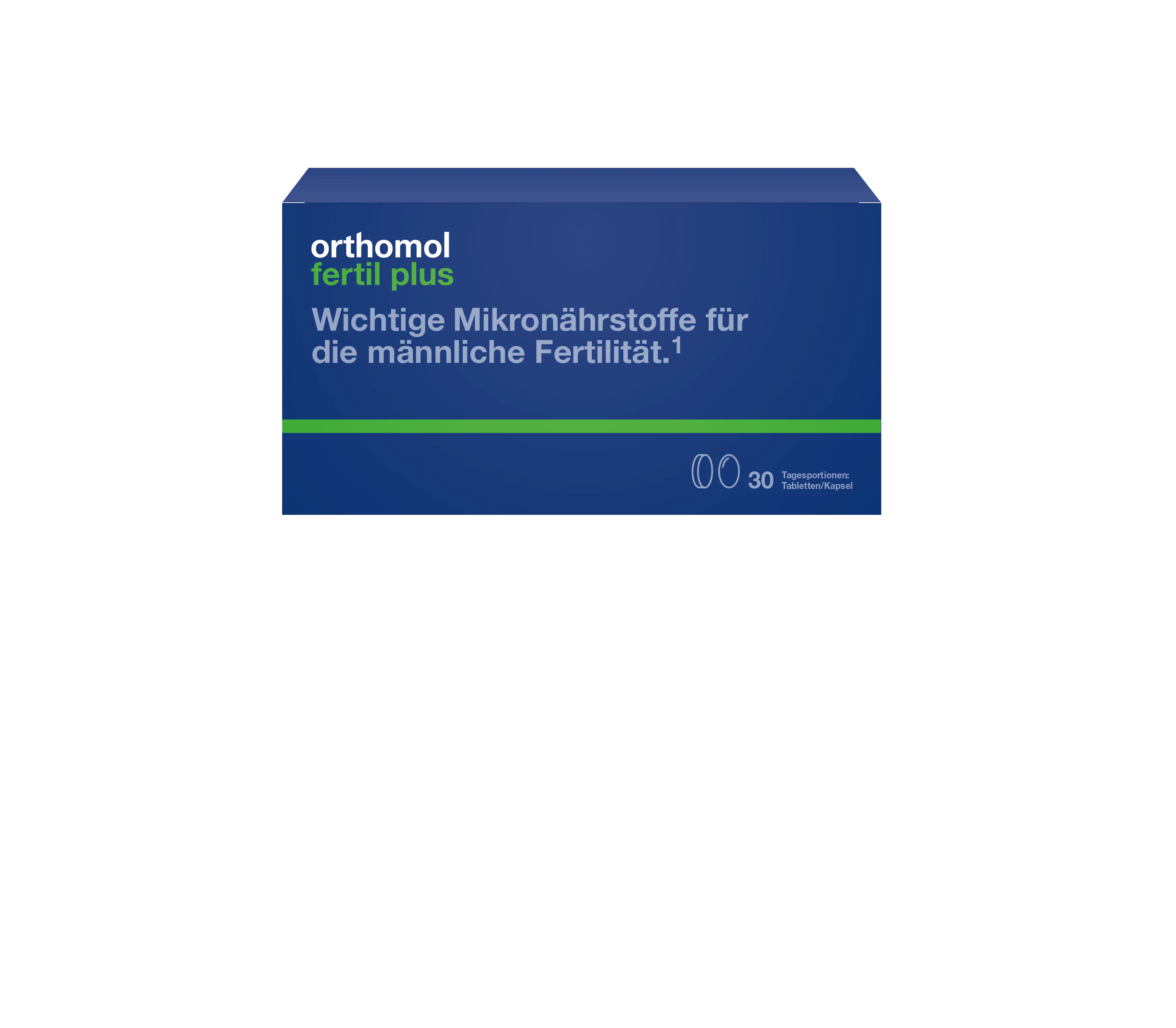 Orthomol Fertil plus ist ein Nahrungsergänzungsmittel. Wichtige Mikronährstoffe für die männliche Fertilität. Mit Zink für die normale Fruchtbarkeit und Fortpflanzung sowie Selen für die normale Spermabildung.